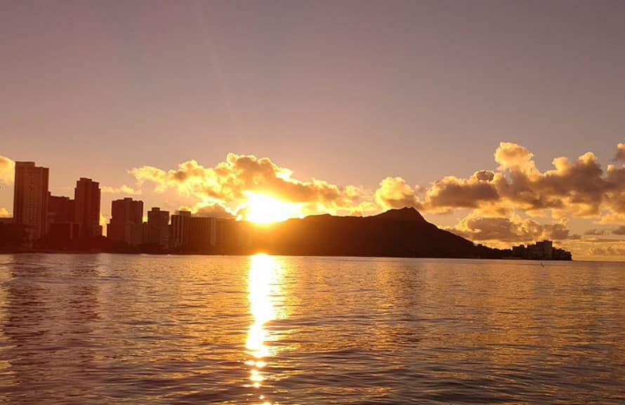 해 질 무렵 다시 와이키키 해변으로 돌아와 노을을 바라보며 칵테일 한 잔. 파도 소리와 함께 하와이다운 하루를 차분하게 마무리합니다.
